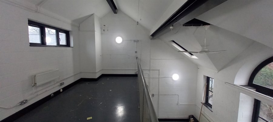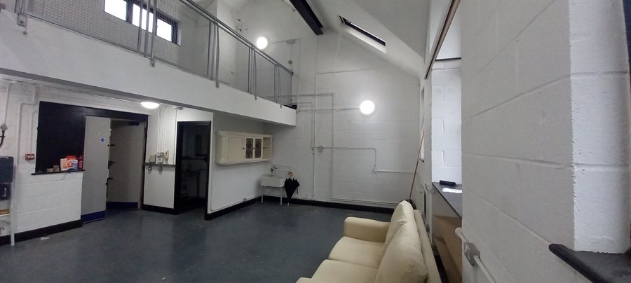 Comprising a first floor studio office which benefits from good natural light and double ceiling height. In addition there is a mezzanine level and fitted kitchen and WC facilities. The unit is served with a large loading atrium with full height doors and vehicle access.